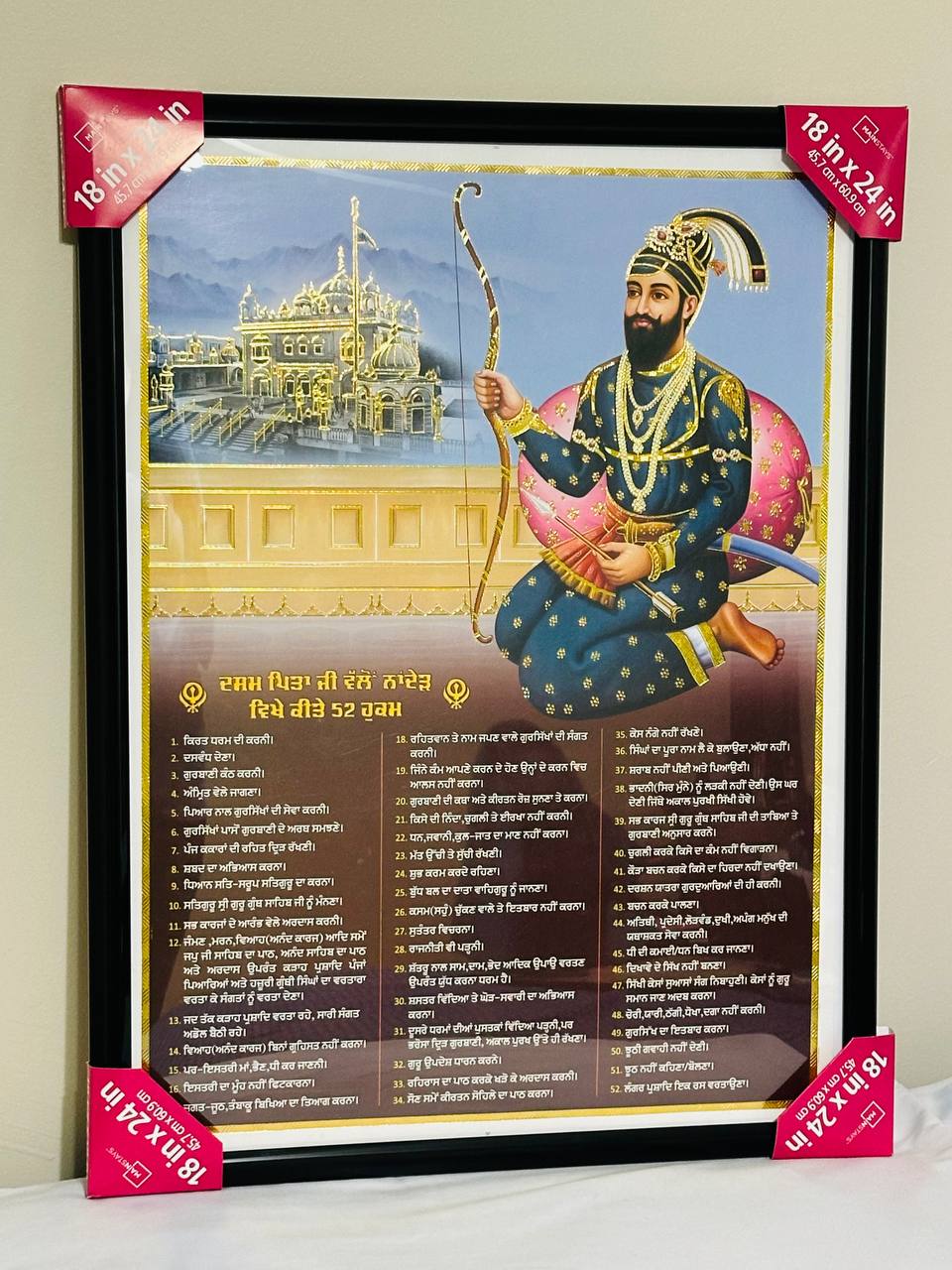 52 Hukam Poster by Sri Guru Gobind Singh Ji in Photo Frame 18"x24"