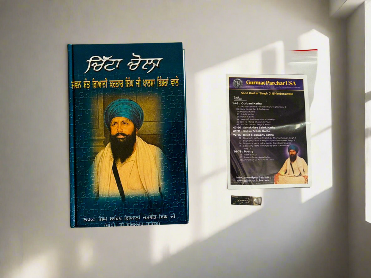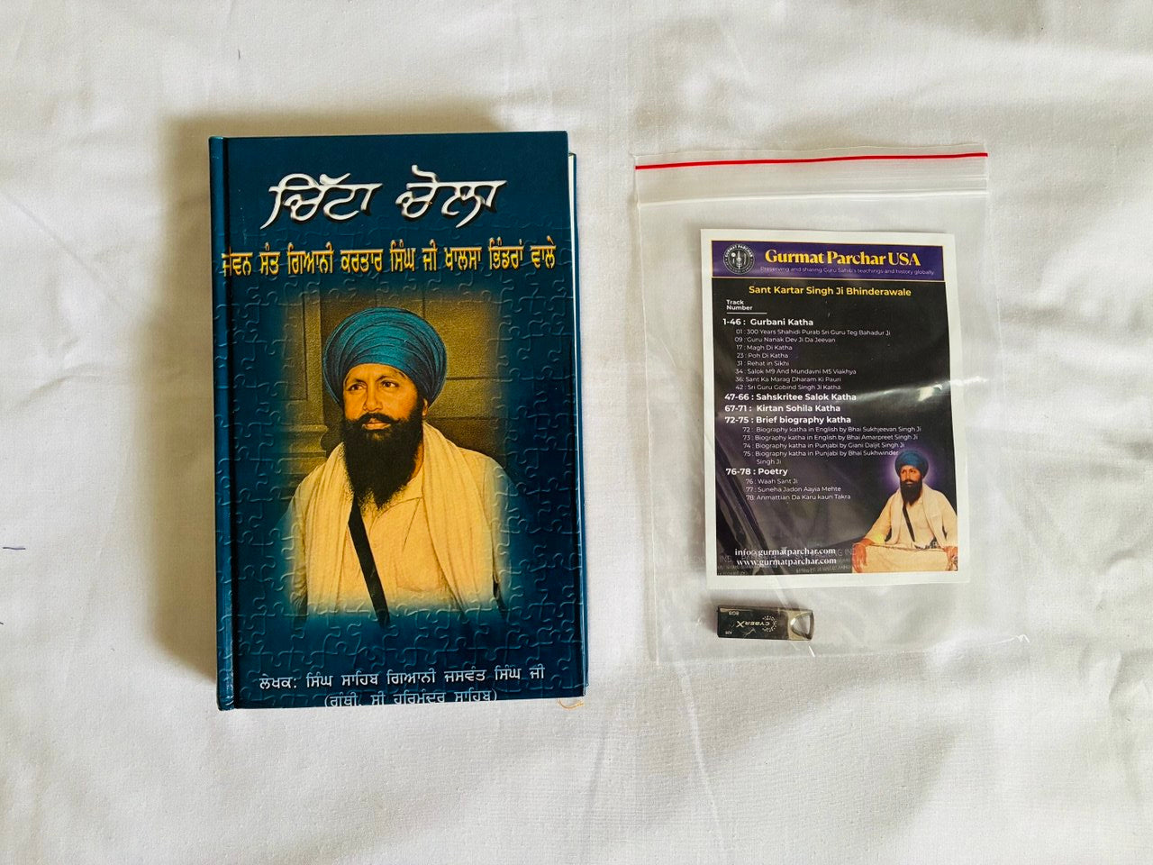 Book Chitta Cholla In Punjabi + USB Drive Sant Kartar Singh Ji Bhindrawale