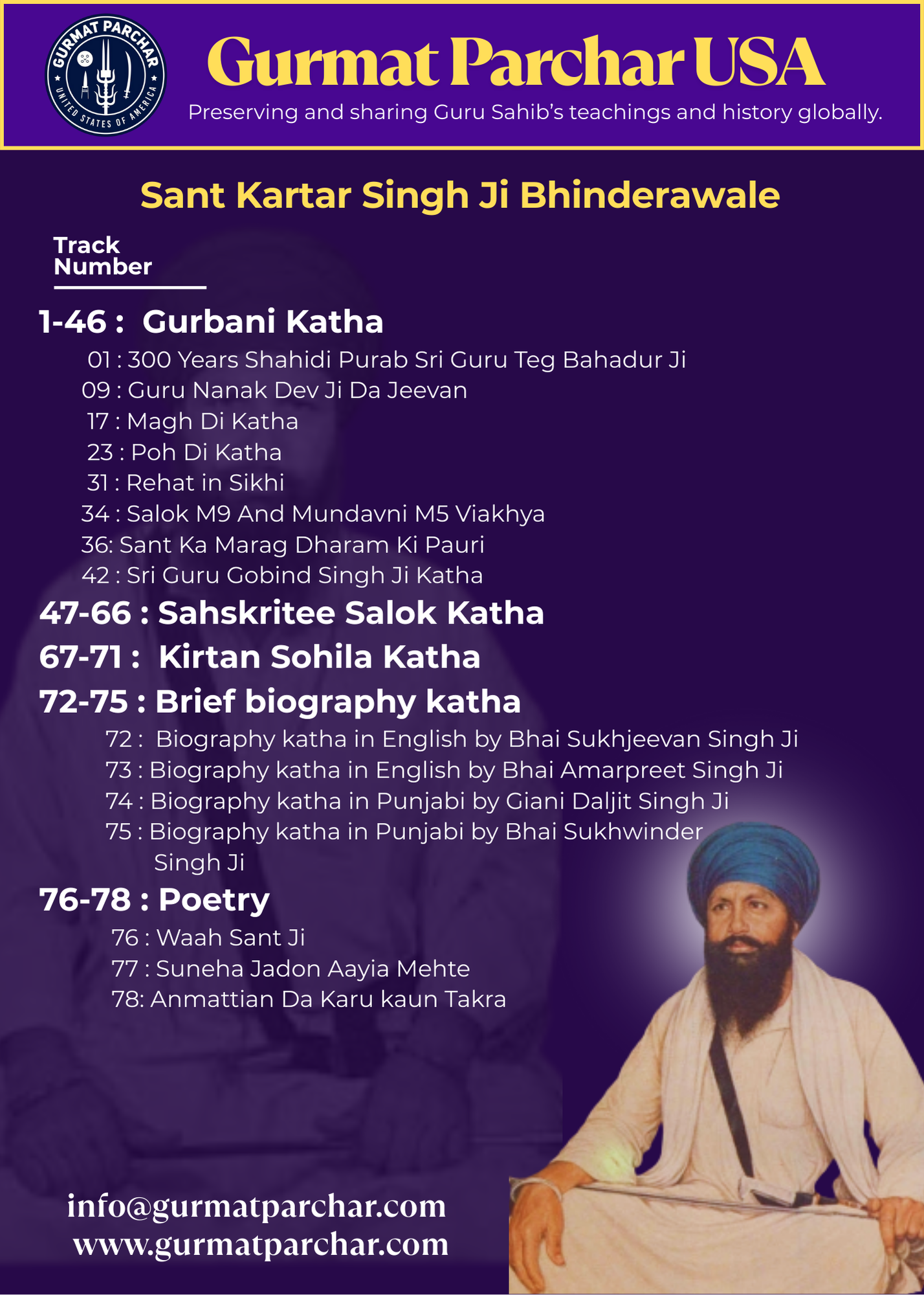 USB Drive Sant Giani Kartar Singh Ji Khalsa Bhindrawale's katha